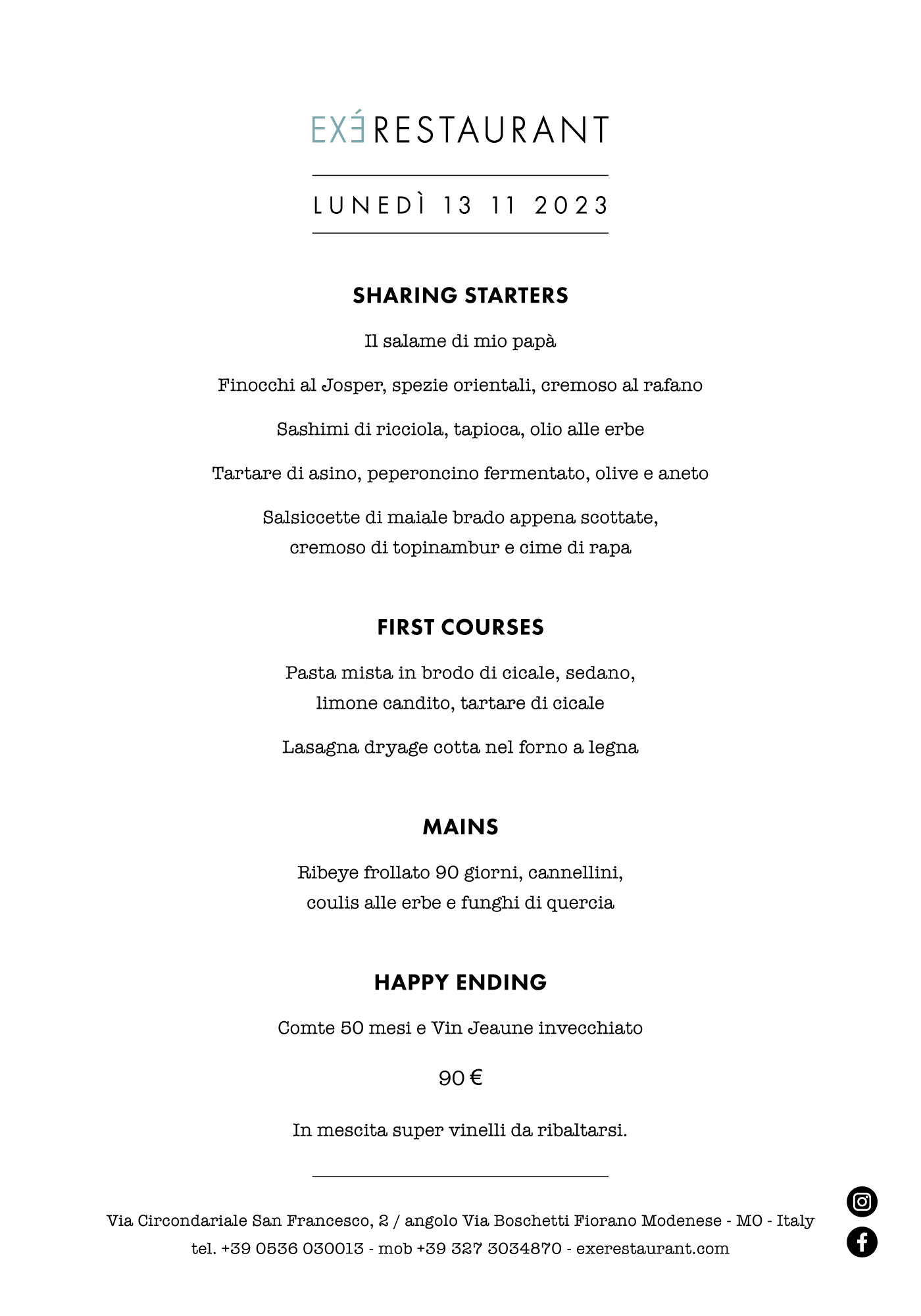 IL MENU DELL'EVENTO